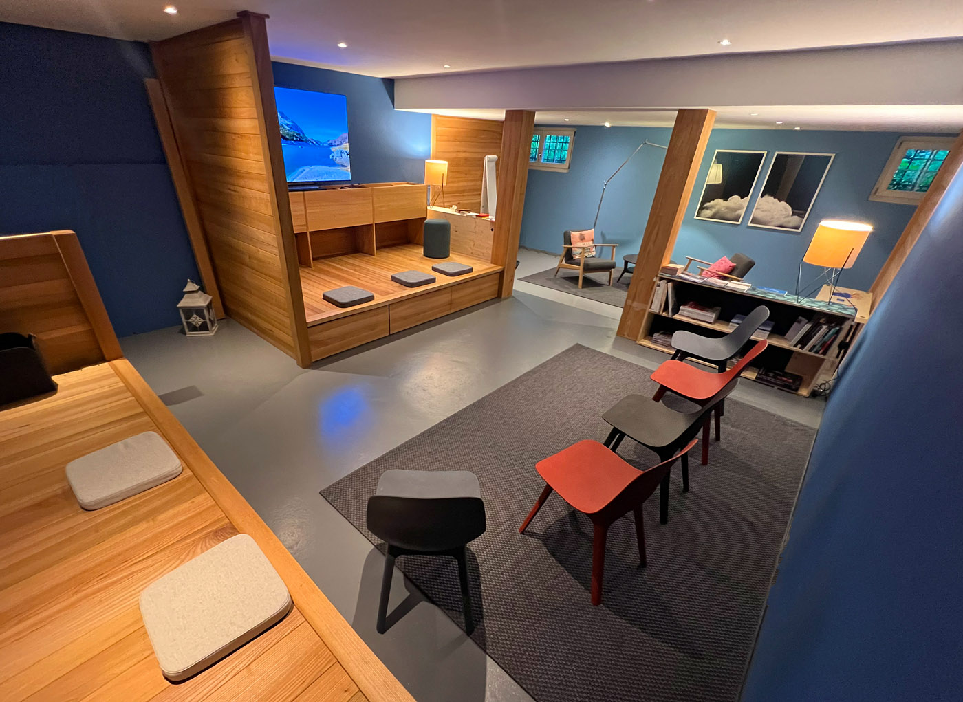 Ansicht des Kursraums Eine flexible Einrichtung und warmes Holz heissen Sie willkommen. Diverse Sitzoptionen und Raum für Gruppenarbeiten Moderne Präsentationstechnik und schnelles Internet genauso wie bewährtes Papier und Stifte... Wir freuen uns auf Sie! |